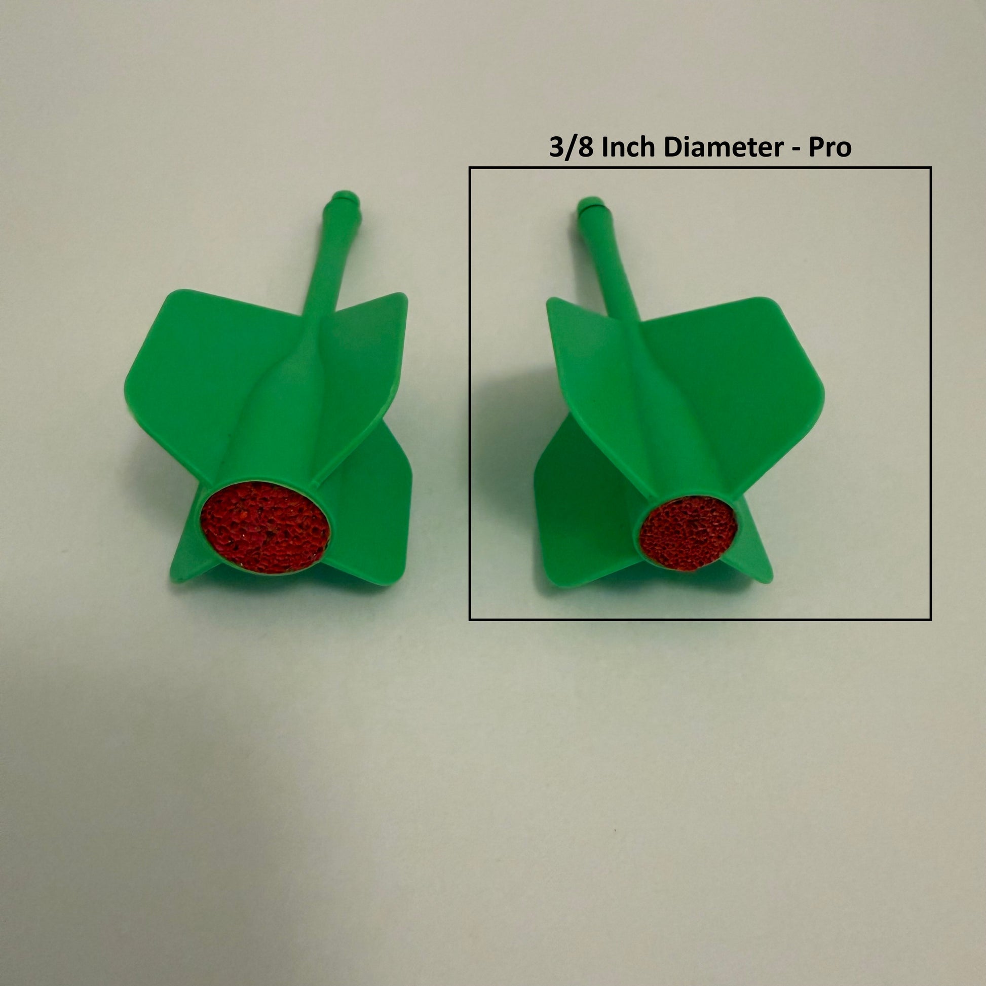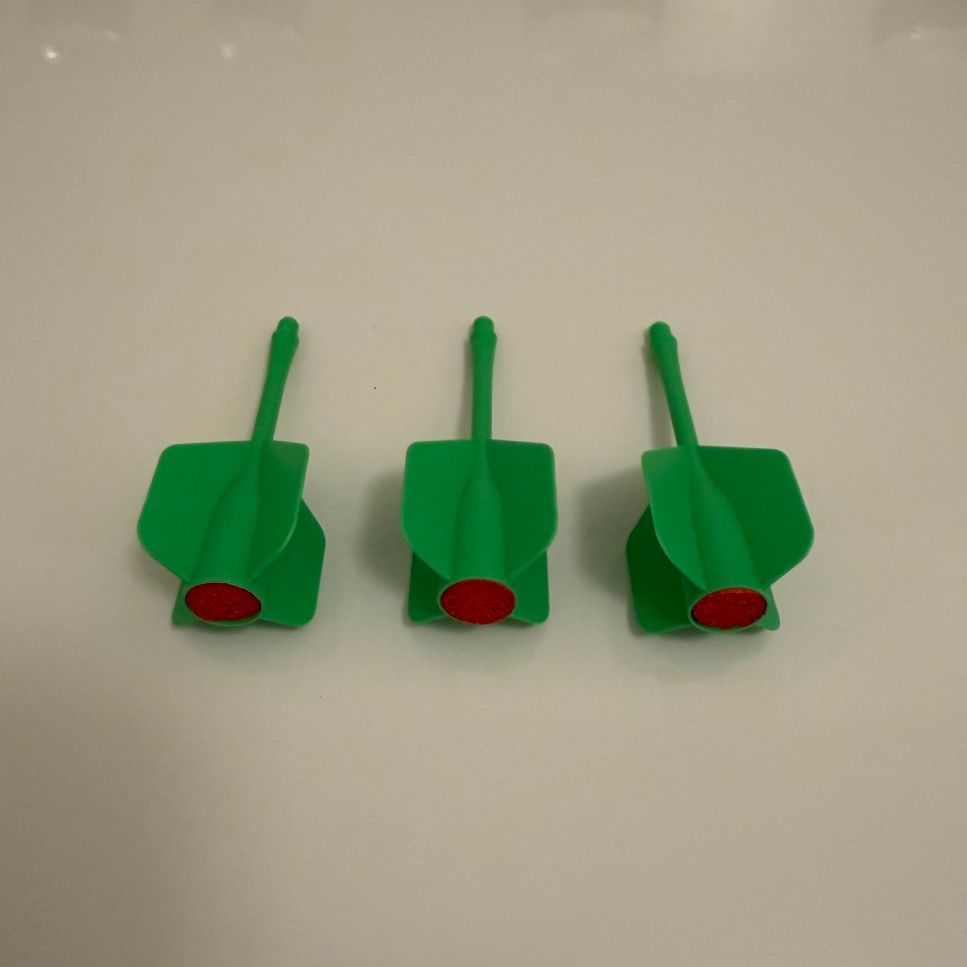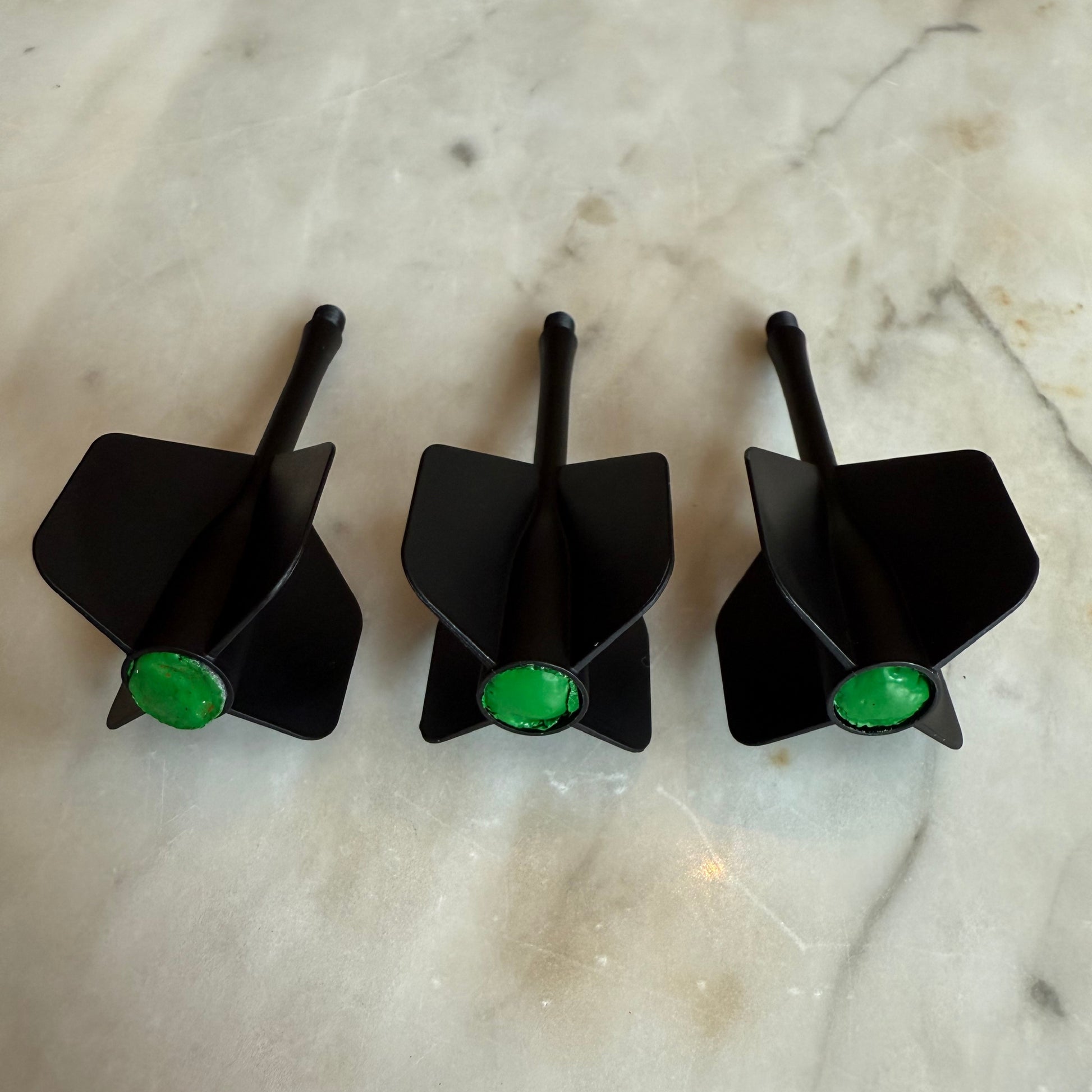 Three Robinhood Darts Flights with 6 extra foam inserts. Standard 2BA threading to fit standard steel dart barrels and tips. The target area at the rear of the flight is 3/8 inch diameter, a smaller target than our easier 1/2 darts. Flights available in Green or Black, both come with green and red foam inserts. (Not for soft tip darts)