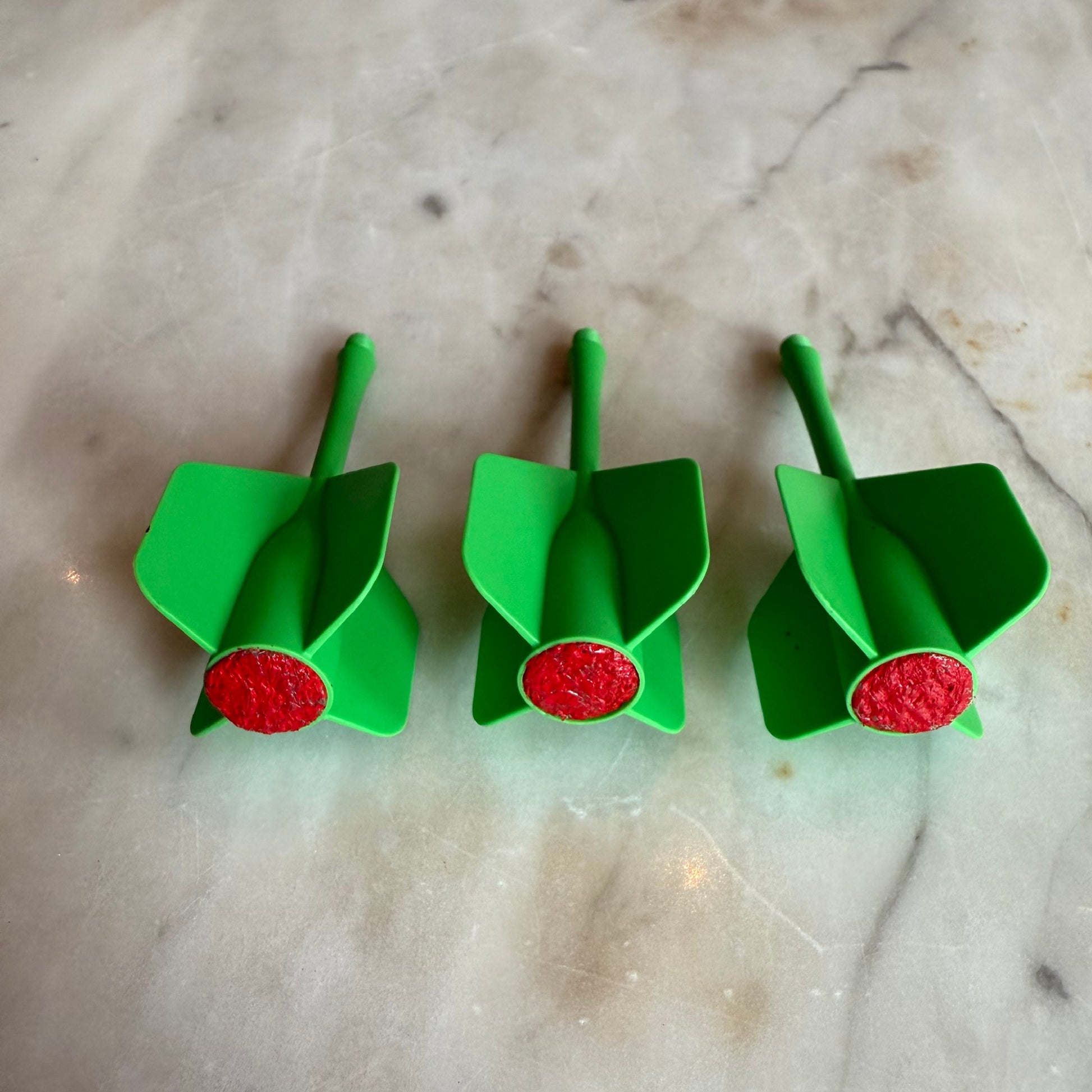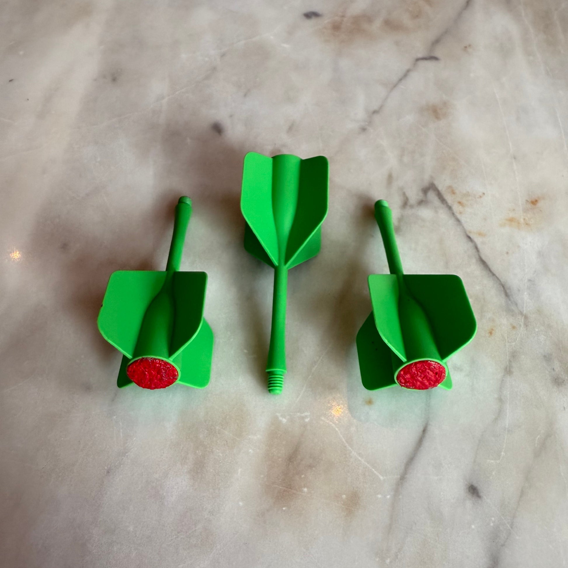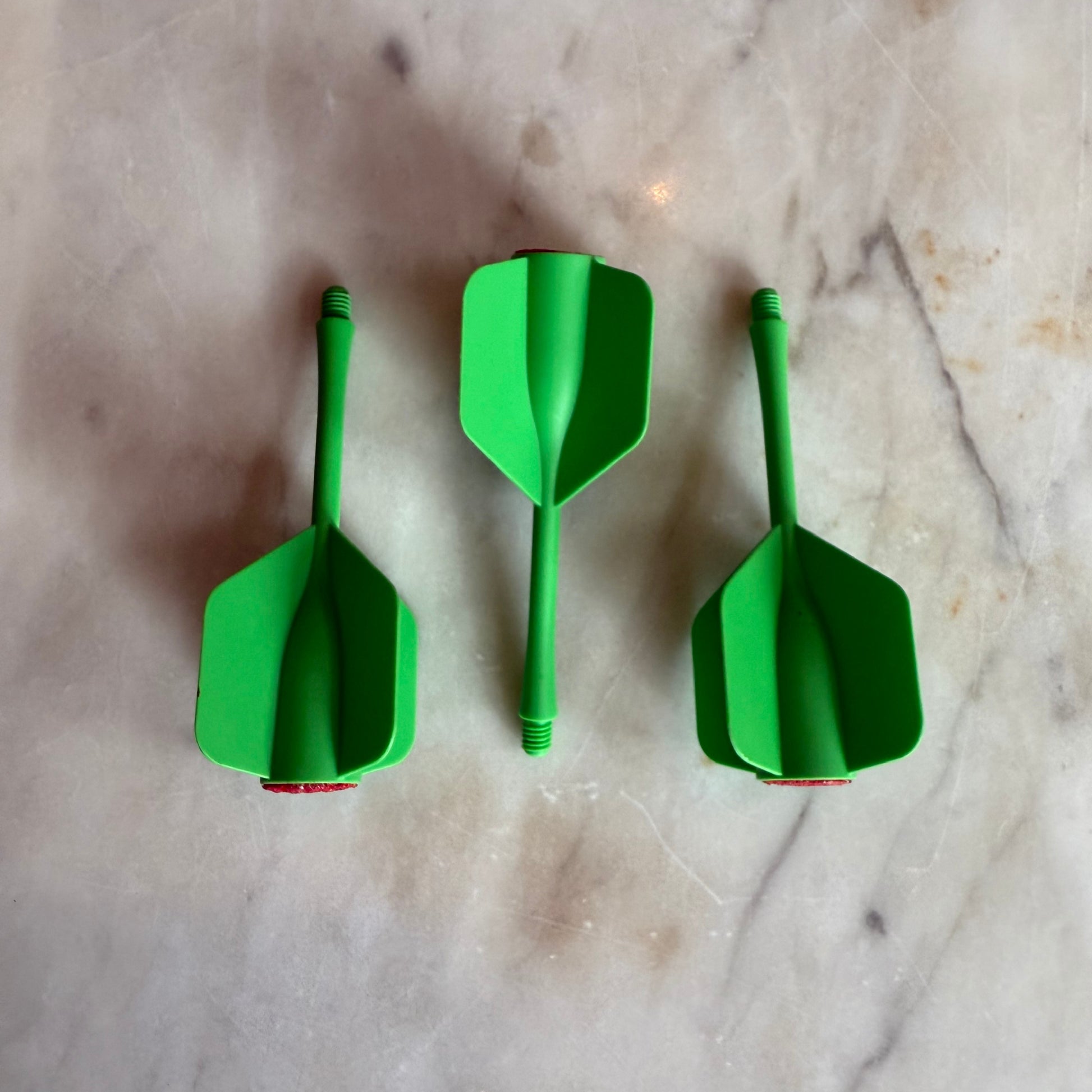 Three Robinhood Darts Flights with 6 extra foam inserts. Standard 2BA threading to fit standard steel dart barrels and tips. The target area at the rear of the flight is 3/8 inch diameter, a smaller target than our easier 1/2 darts. Flights available in Green or Black, both come with green and red foam inserts. (Not for soft tip darts)